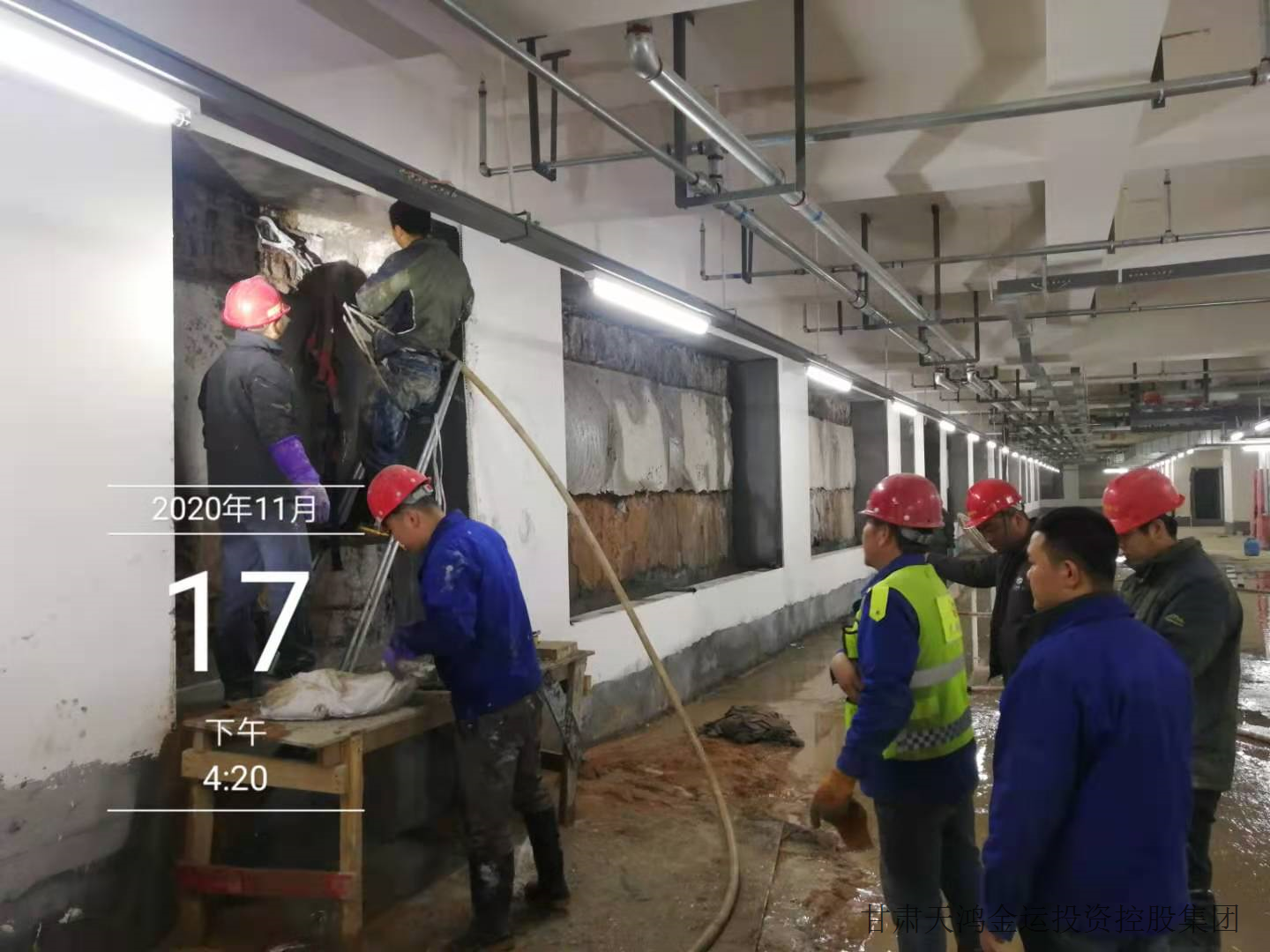 202011171400,地下室 負三層北側地連墻再次發生地連墻跑水事件,造成負三層地下室大面積積水,嚴重影響已安裝電路安全和抹灰刮白、地坪施工。在指揮部康生明和楊九相的指揮下,緊急啟動應急處理預案,相關部門積極配合,安全文明部第一時間趕到漏水現場,以王政軍、陳國林、張玉良、毛 鋒、雷東平、李鵬兵為主堵漏先鋒,高健、陳繼全、李永德、張永順、魏辛才、屈向濤等積極相互配合。堵漏的堵漏,轉運真空泵接電抽排積水的抽排積水。在預埋了兩根導流管后于17點左右完成漏點應急封堵工作,在刺骨的地下水里連續泡了3個多小時,為公司利益他們毫無怨言,齊心協力、精誠團結,進行應急封堵,為后續上海基礎封堵處理創造了有利條件。